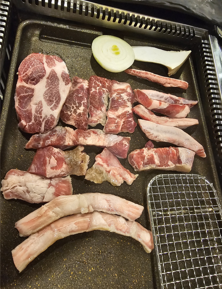 1차로 회사 근처에 있는 이베리코 흑돼지에서 먹었는데 가격이 일반 돼지고기보다 비싼데 부드럽기는 소고기와 비슷한
