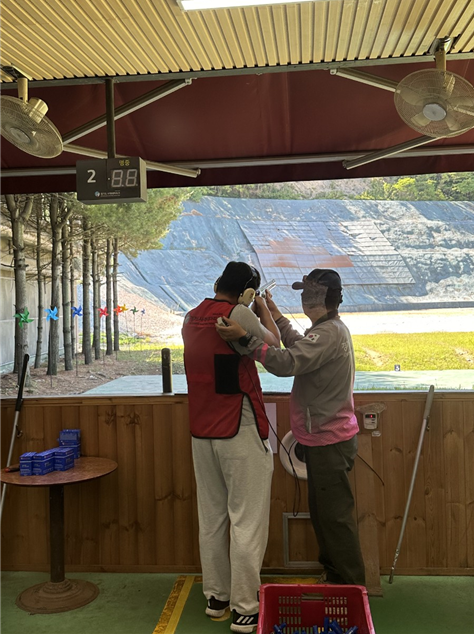 사진을 가까이서 찍고 싶었지만 사격하는사람이 아니면 외부에서 사진을 찍어야 하기때문에