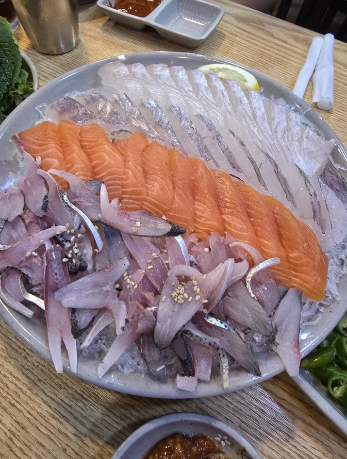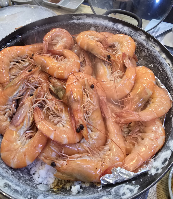 먼저 제철 대하소금구이와 맛있는 회 그리고 그외 음식 사진입니다.