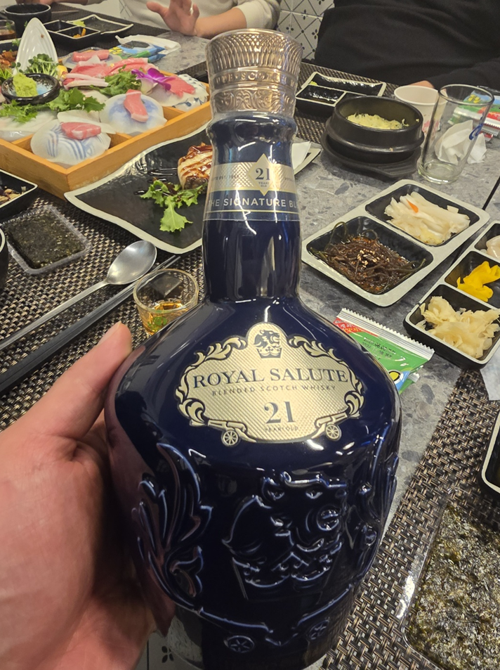 우리 대표님이 연말회식을 위해 공수해오신 영화 킹스맨에서 나왔던 위스키(달모어)와 로얄샬루트21년산이 우리를 기다리고 있었으며 금가루가 뿌려진 고급진 참치가 기다리고 있기에...